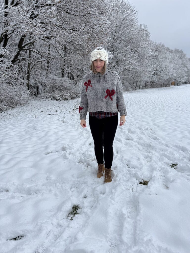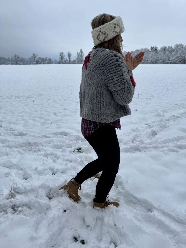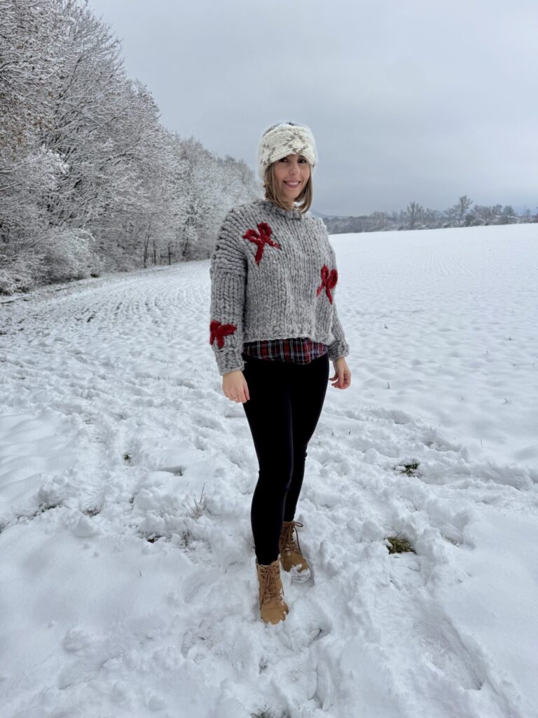 I knitted my 100% wool sweaters in late summer and autumn, when the sun still had strength—almost as if I was saving warmth for the colder months ahead. Now, with real winter here—snow, cold winds, and temperatures below freezing—I feel their true power. Wool is naturally temperature-regulating: it keeps you warm without feeling suffocating, and it breathes better than many synthetic materials. A chunky hand-knit also creates tiny “air pockets” between the stitches, and those layers of trapped air are what make the warmth feel so comforting—like home.